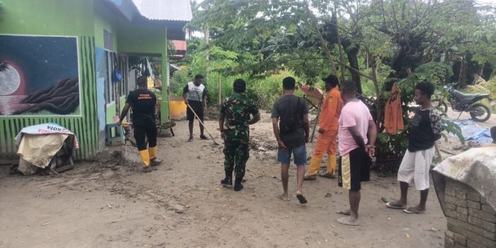 “Sementara itu, Dinas Sosial Kabupaten Teluk Wondama membagikan bantuan makanan bagi warga yang terdampak banjir. Kami Kodim 1811/TW dalam rangka mengantisipasi terhadap dampak banjir susulan, berinisiasi mendirikan Posko Siaga Banjir untuk memantau situasi dan lokasi yang rawan banjir, selain itu juga kami ikut aktif dalam mengingatkan warga agar selalu waspada pada saat hujan deras dengan durasi cukup lama”.