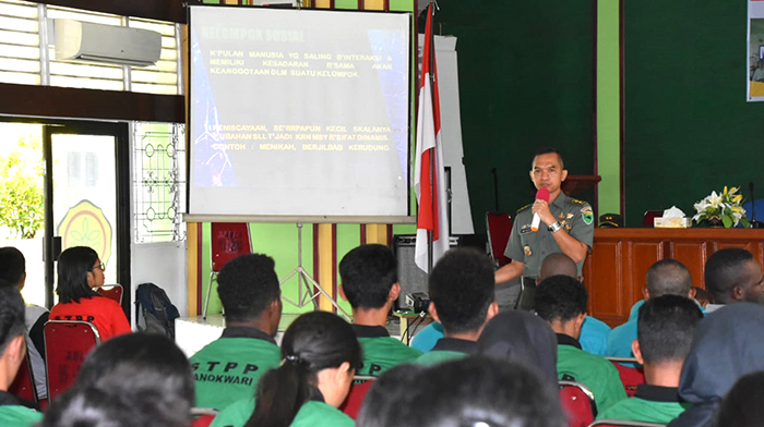 Dalam ceramah tentang Sosial Budaya yang disampaikan oleh Kapendam XVIII/Kasuari, bahwa sosial merupakan kumpulan individu yang saling berinteraksi dan membutuhkan serta memiliki hak dan kewajibannya masing-masing. Sedang budaya adalah cara hidup yang berkembang dan dimiliki kelompok orang serta diwariskan dari generasi ke generasi selanjutnya. Setiap generasi muda/warga Negara Indonesia harus memiliki rasa cinta tanah air, kesadaran berbangsa dan bernegara, setia pada Pancasila dan UUD 1945, rela berkorban bagi bangsa dan negara, serta memiliki kemampuan Bela Negara baik secara psikis maupun fisik dan bertujuan membangun dan membina karakter generasi muda bangsa Indonesia yang berakhlak mulia, disiplin, terampil, cerdas, kesatria, cinta tanah air dan bangsa serta memperkokoh Bhinneka Tunggal Ika.