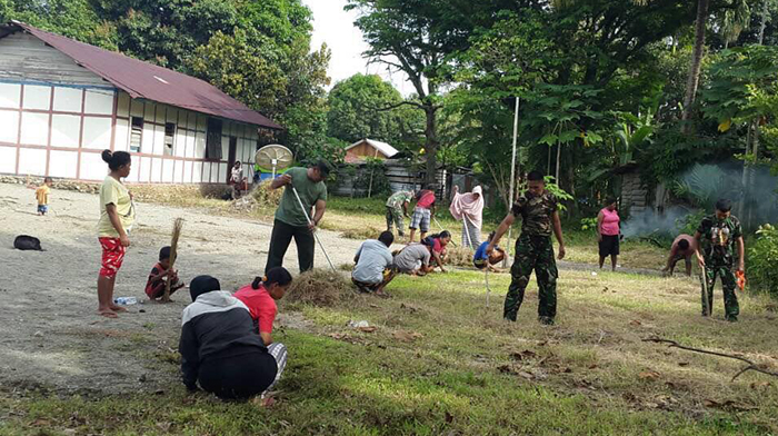 Sorong – Babinsa Koramil 1704-02/Sausapor Sertu Sulaiman melaksanakan karya bakti bersama-sama warga masyarakat di Kantor Kampung Sausapor Distrik Sausapaor dan komunikasi sosial dengan dinas perhubungan Kab. Tambrauw, Senin (22/05/2017).