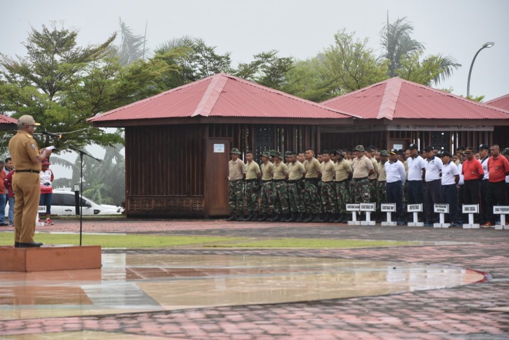 Manokwari – Gubernur Papua Barat Drs. Domingus Mandacan mengambil apel karya bhakti dalam rangka Hari Peduli Sampah Nasional di halaman kantor Gubernur dan dihadiri para pejabat kantor Gubernur dan peserta dari Kodam XVIII/Ksr 50 orang, Fasharkan TNI AL 15 orang dan Polda Papua Barat 25 orang serta ASN kantor Gubernur 150 orang, Selasa, (26/02/2019).