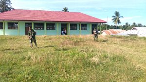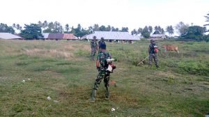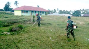 Kaimana – Bertempat di Kampung Trikora, Kabupaten Kaimana, Papua Barat, Anggota Kodim 1713/Kaimana melaksanakan kegiatan pembersihan di SMPN 2 Kaimana, Rabu (04/04/2018).