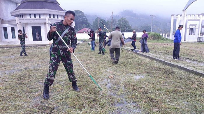 Kaimana – Dalam rangka program kerja Kodim 1713/Kaimana untuk menjaga wilayah Kaimana tetap bersih dan indah maka setiap 3 bulan sekali diadakan kegiatan Gotongroyong Jumat Bersih bersama masyarakat dan Pemerintah Daerah Kab. Kaimana, Jumat (13/07/2018).