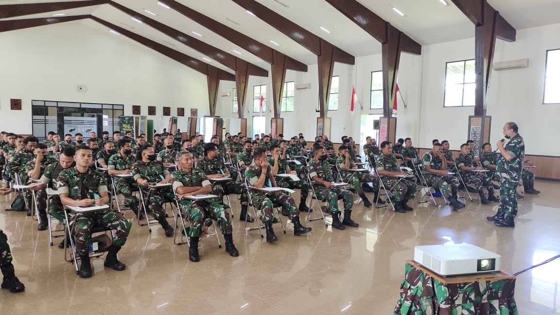 Manokwari. kodam18kasuari.tni-ad.mil.id – Kasdam XVIII/Kasuari, Brigjen TNI Yusuf Ragainaga buka kegiatan Mobile Training Team (MTT) pengetahuan dasar Intelijen bagi Bintara Intel dan Babinsa TA.2022, di aula Kodam XVIII/Kasuari, Trikora, Arfai 1, Manokwari, Papua Barat, Senin (21/3/2022).