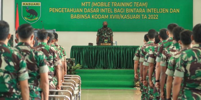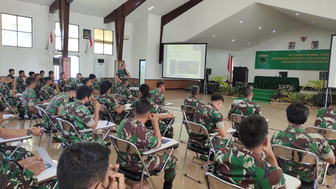 MTT pengetahuan dasar Intel ini diselenggarakan bagi Bintara Intelijen dan Babinsa jajaran Kodam XVIII/Kasuari TA. 2022, rencana akan berlangsung selama dua minggu.