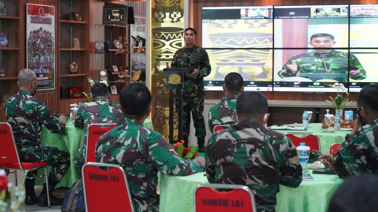 Dalam kunkernya ke wilayah Sorong Kasdam didampingi Aspers, Kol Inf Nugroho Imam Santoso, sekaligus memberikan pengarahan kepada para Perwira di jajaran Korem 181/PVT.