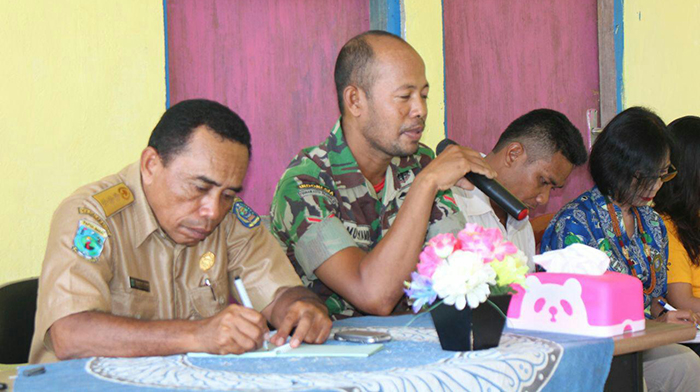 Babinsa juga menyampaikan tentang rencana pembangunan daerah di Distrik Tiplol Mayalibit yang direncanakan oleh pemerintah daerah serta sosialisasi program inovasi desa dan pemilihan tim inovasi desa kedepan.