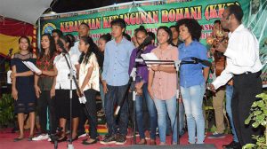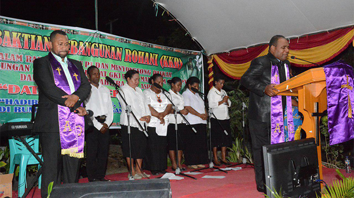 Sorong – Staf Bintal Korem 171/PVT Menggelar Kegiatan Kebangkitan Dan Kebangunan Rohani dan bekerjasama dengan Jemaat GKI Klasis Sorong yang berada sekitar Makorem 171/PVT, yang dihadiri oleh Sekretaris Klasis GKI Sorong Pdt. Yohanis Sattu, MA,M.MIS, Kabintal Korem 171/PVT Pdt. Abner Salawati, S.Th, , Ketua PHMJ GKI Emaus Makorem, Pdt. Hana Sahulata, S.Th, Pendeta Pendamping GKI Mako Brimob Den C Pdt.E. Komigi, S.Th, Pdt. Mikel Mambuay, S.Th, dan seluruh Jemaat GKI Asrama Makorem 171/PVT, Jemaat Asrama Aspol, Jemaat Asrma Pensiunan, yang bertempat di Jl. Bangau 1, Sorong-Papua Barat, Sabtu (17/03/18).