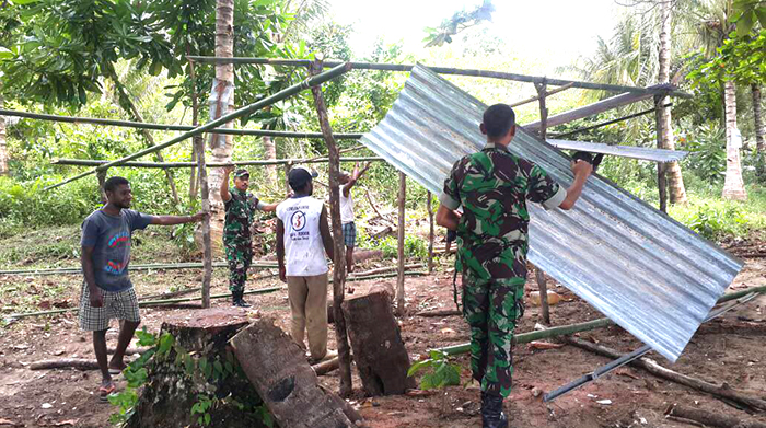 Serbuan teritorial yang dilaksanakan oleh Sertu Pardi yang bertugas di Kampung Malaumkarta mengatakan kami berkerja bahu membahu dengan masyarakat untuk mendirikan tenda akan digunakan beribadah oleh masyarakat ini semua tidak terlepas dari pembinaan teritorial hal ini rutin kami lakukan karena bersama rakyat , TNI kuat dan bersama TNI, Rakyat sejahtera.