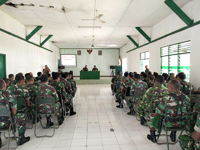 Fakfak – bertempat di Aula Kodim 1803/Fakfak Jln. M. Yamin Kel Fakfak Utara Kab Fakfak telah diadakan kegiatan Pemberian Materi Pembekalan Tentang Penggunaan Dukops Babinsa dengan pembawa materi Letkol Inf Yatiman A.md (Dandim 1803/Fakfak). Turut hadir dalam kegiatan Pembekalan Babinsa yaitu, Mayor Inf Wahlin Rahman S.Pd (Kasdim 1803/Fakfak), Kapten Inf E C Huninhatu (Pasilog), Kapten Inf Bonadji (Pasiops), Kapten Inf Sifuan Patiran (Pasipers), Kapten Inf Ali Anwar (Danramil 02/Kokas), Lettu Inf Zainudin (Dan Unit Intel), Para Babinsa Kodim 1803/Fakfak 60 Orang, Kamis (03/01/2019).