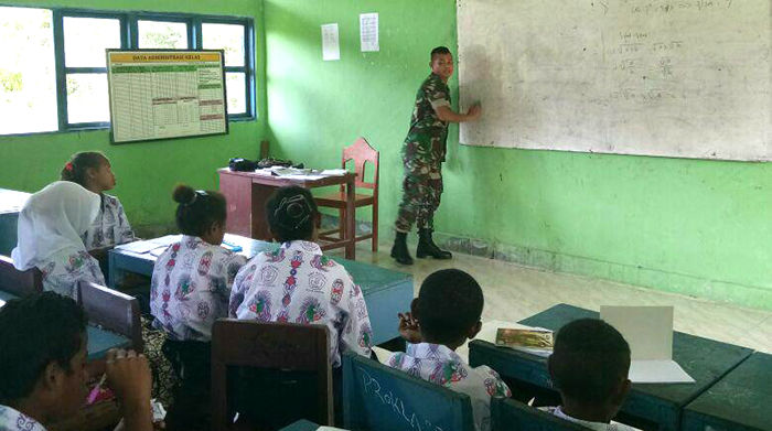 Kegiatan tersebut secara spontan muncul dari Babinsa dan meminta bantuan Pos Sekitar untuk membantu mengajar karena melihat kekurangan tenaga pengajar, yang di tinggal gurunya mengurus persoalan sekolah di kota kaimana yang jarak nya cukup jauh dengan menggunakan transpostasi Air atau menggunakan long boat dengan jarak tempuh kurang lebih 6 Jam.