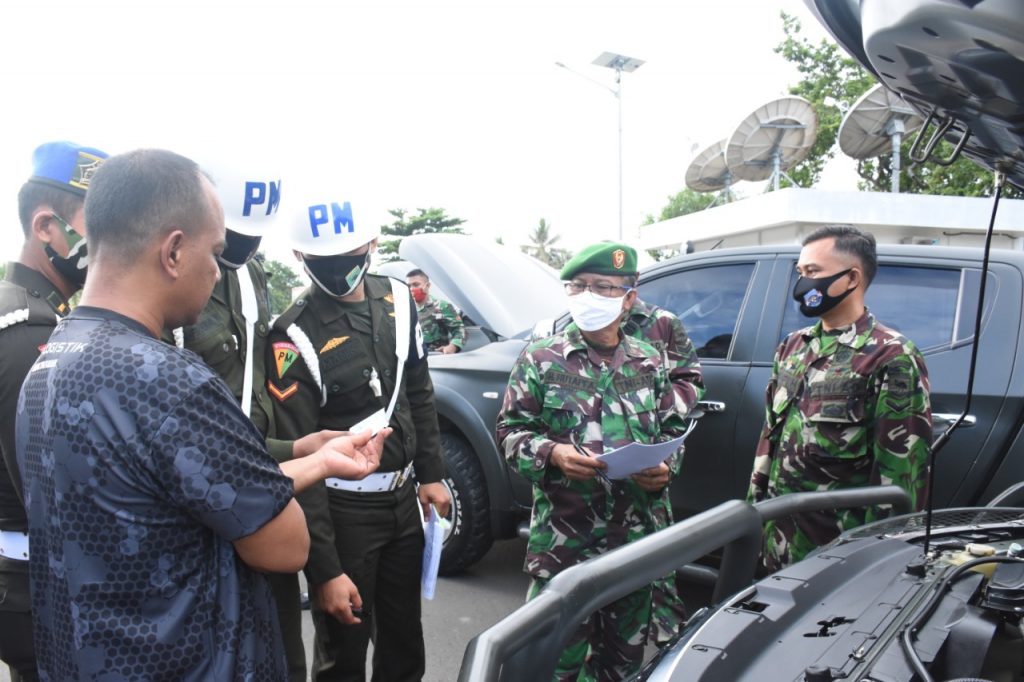 Pemeriksaan langsung terhadap kendaraan roda dua dan roda empat dinas beserta pengemudinya, dilakukan dibawah kendali langsung Asisten Logistik (Aslog) Kasdam XVIII/Kasuari, Kolonel Kav Aloysius Nugroho Santoso, Rabu (17/6/2020) di jalan utama Makodam XVIII/Kasuari.