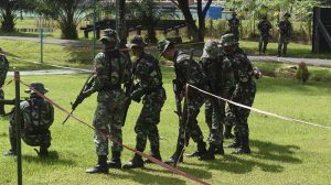Sorong –  Balalyon Infanteri Raider Khusus 752/VYS melaksanakan pengenalan latihan Raid Pembebasan Tawanan (Raid Baswan), yang di latih oleh Bintara Pelatih (Bapel) dari masing  masing Kompi yang berada di Mako Yonif RK 752/VYS, bertempat di lapangan Tower Kompi B Yonif RK 752 / VYS, Selasa(10/07/2018).