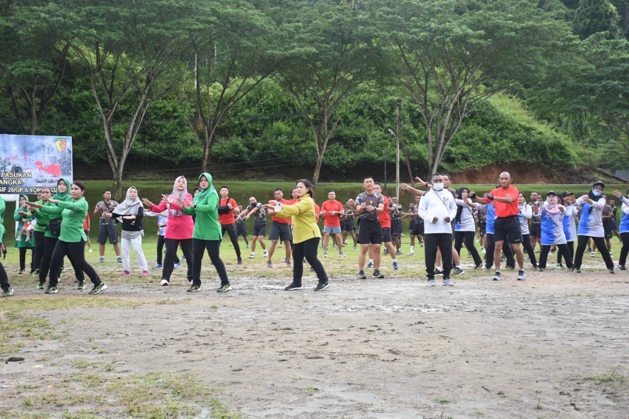 Teluk Bintuni. kodam18kasuari.tni-ad.mil.id – Dalam rangka meningkatkan kesehatan juga perkembangan fisik menjadi baik dan seimbang, sekaligus bagun kedekatan sesama istri prajurit, Ketua Persit KCK Daerah XVIII/Kasuari, Ny. Alin Gabriel Lema, ajak Persit Cabang XX Ranting Brigif 26/GP dan Ranting 3 Yonif 763/SBA olahraga bersama, di lapangan Yonif 763/SBA, Teluk Bintuni, Papua Barat, Rabu (23/3/2022).