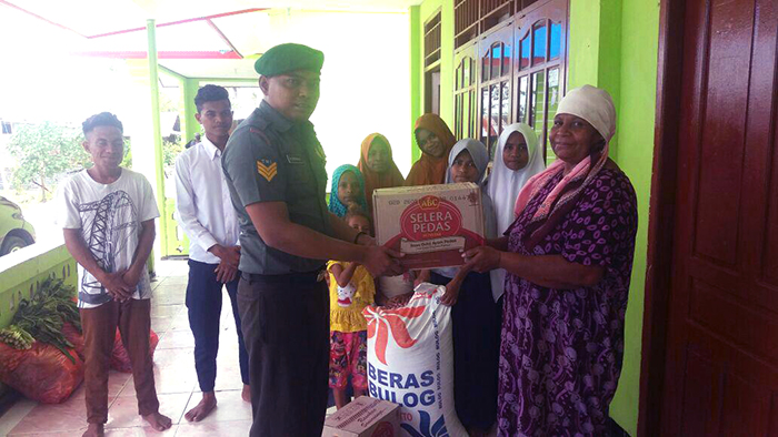 Sorong – Babinsa Koramil 1704-13/Sorong Barat, Sertu Sukron berkesempatan berkunjung ke Panti Asuhan Putra Putri Papua yang di sambut oleh perwakilan Pengurus Panti Asuhan Ibu Roni, Senin (11/12/17).