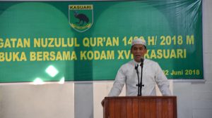 Manokwari – Kodam XVIII/Kasuari menggelar Acara Nuzulul Quran dimasjid Istiqlal makodam XVIII/Kasuari, guna memperingati peristiwa penting bagi umat islam, dimana Allah Swt menurunkan Wahyunya yaitu Alqur’an kepada Rasulullah SAW, Sabtu (02/06/17).