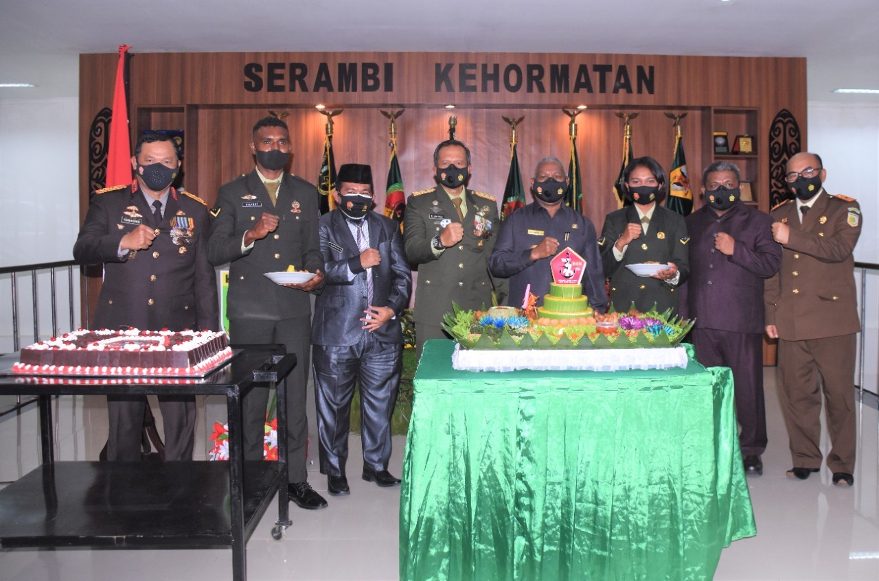 Manokwari. kodam18kasuari.tni-ad.mil.id – Dalam memperingati Hari Ulang Tahun (HUT) ke-76 TNI, Kodam XVIII/Kasuari menggelar acara ramah tamah dan syukuran yang digelar secara sederhana di Serambi Kehormatan, Makodam XVIII/Kasuari, Trikora, Arfai 1, Manokwari, Papua Barat, Selasa (5/10/2021).