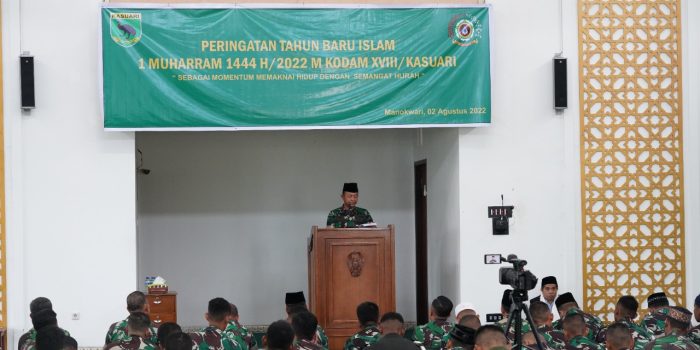 Pangdam XVIII/Kasuari, dalam amanat tertulis yang dibacakan oleh Irdam, Brigjen TNI Eko Susetyo, M.M., M.Tr.(Han)., menyampaikan peristiwa tahun baru Hijriah adalah awal penanggalan umat Islam yang dimulai Rasulullah SAW bersama para sahabat melakukan hijrah dari kota Mekah ke Kota Madinah.