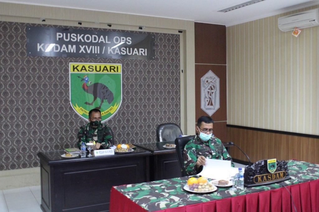 Webinar dipimpin Kasdam XVIII/Kasuari, Brigjen TNI Ferry Zein, yang mewakili Pangdam XVIII/Kasuari, Mayjen TNI Ali Hamdan Bogra, S.I.P., M.Si. selaku Panglima Komando Tugas Gabungan Terpadu (Pangkogasgabpad) XVIII/Kasuari.