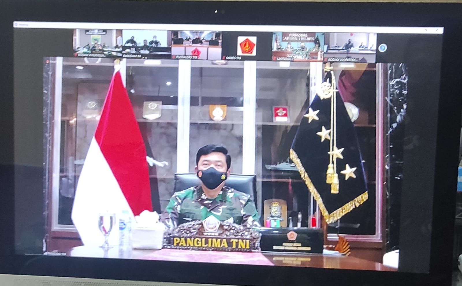 Manokwari. kodam18kasuari.tni-ad.mil.id – Kodam XVIII/Kasuari dipimpin Pangdam Mayjen TNI I Nyoman Cantiasa, S.E., M.Tr.(Han) didampingi Kasdam Brigjen TNI Djoko Andoko, Aster, Kakesdam dan Waasops mengikuti rapat dengan Mabes TNI dipimpin langsung oleh Panglima TNI Marsekal TNI Dr. (H.C) Hadi Tjahjanto, S.I.P melalui video conference (Vicon), Selasa (14/9/2021).