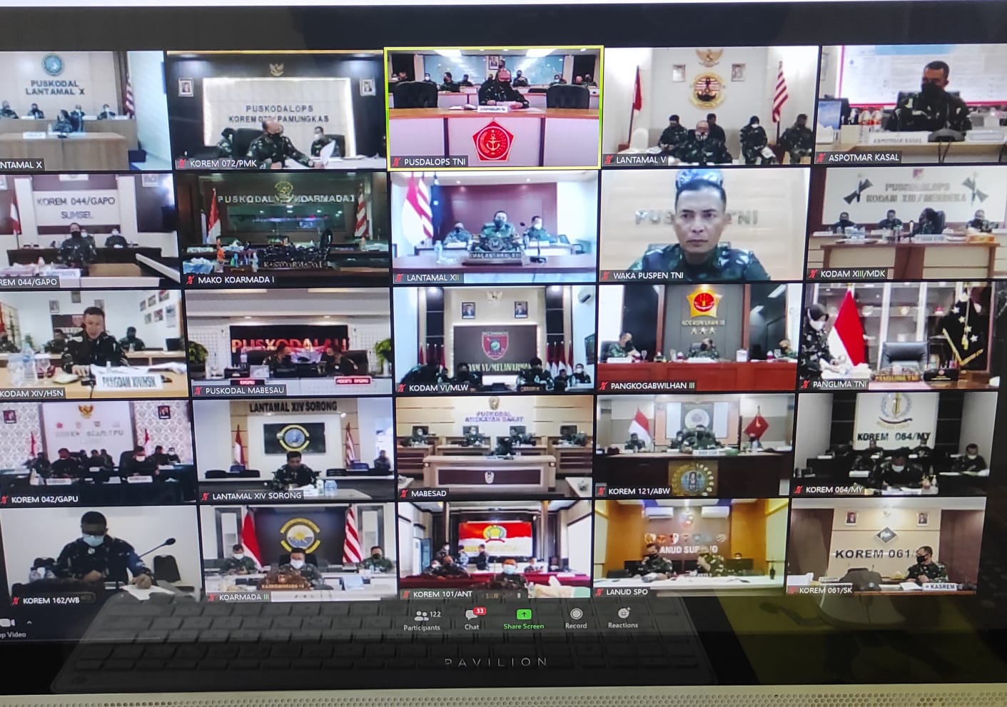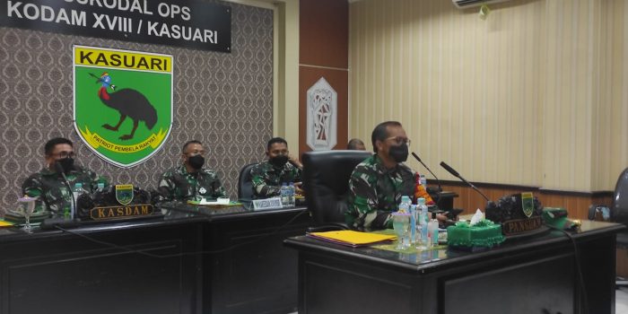 Rapat tersebut dalam rangka rapat evaluasi penanganan pandemi Covid-19 diikuti dari ruang Pusat Komando Pengendalian Operasi (Puskodalops) Kodam XVIII/Kasuari, Trikora, Arfai 1, Manokwari, Papua Barat.