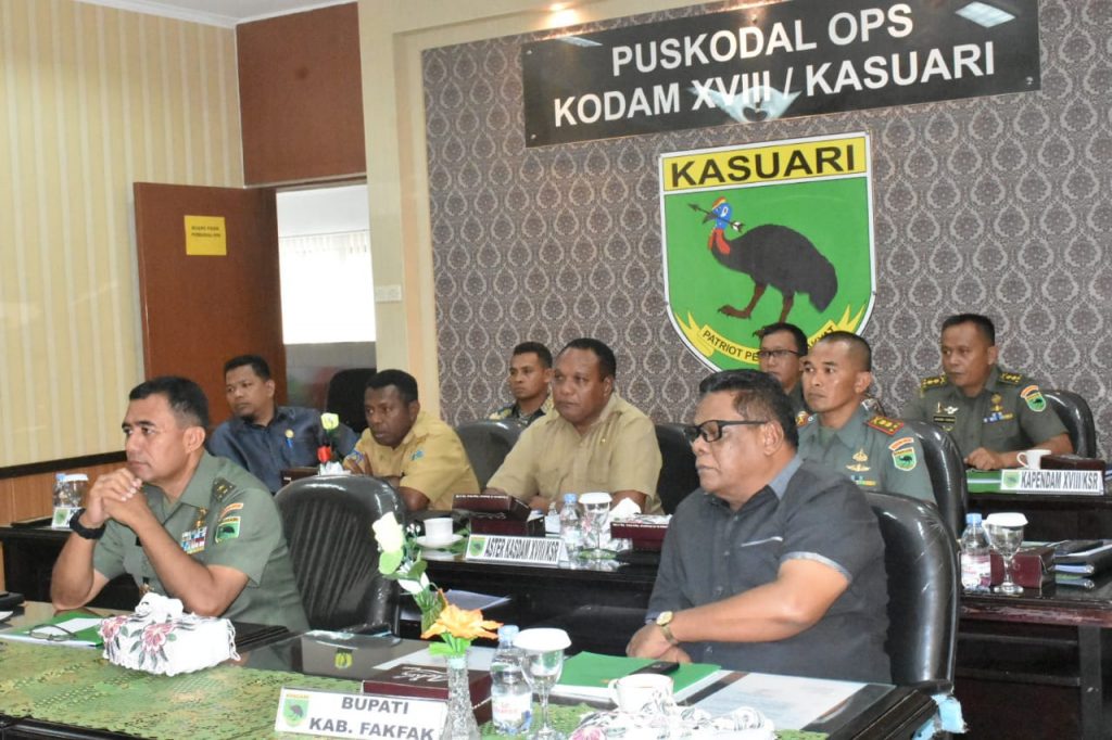 Vicon atau konferensi video di Kodam XVIII/Kasuari, digelar pada Selasa (3/3/2020) di Ruang Yudha Makodam XVIII/Kasuari, Arfai I, Manokwari, Papua Barat, dengan pimpinan Kepala Staf Kodam (Kasdam) XVIII/Kasuari Brigjen TNI Ferry Zein.