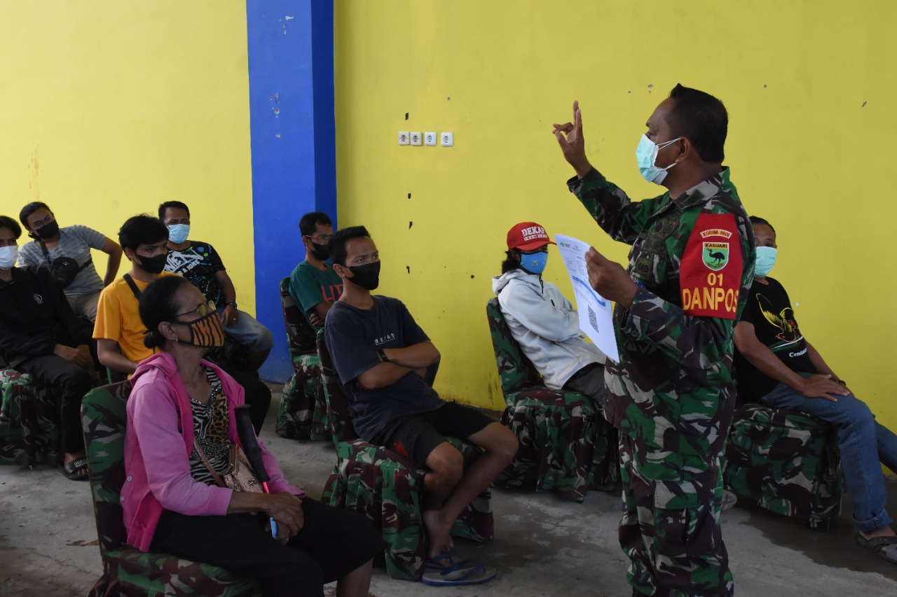 “Kami juga sampaikan bagi masyarakat yang ingin datang untuk melaksanakan vaksinasi hanya cukup membawa KTP dan bagi yang belum mempunyai KTP cukup dengan membawa kartu keluarga, karena vaksin ini bisa untuk usia 12 tahun keatas” ujar Mayor Jhoni.