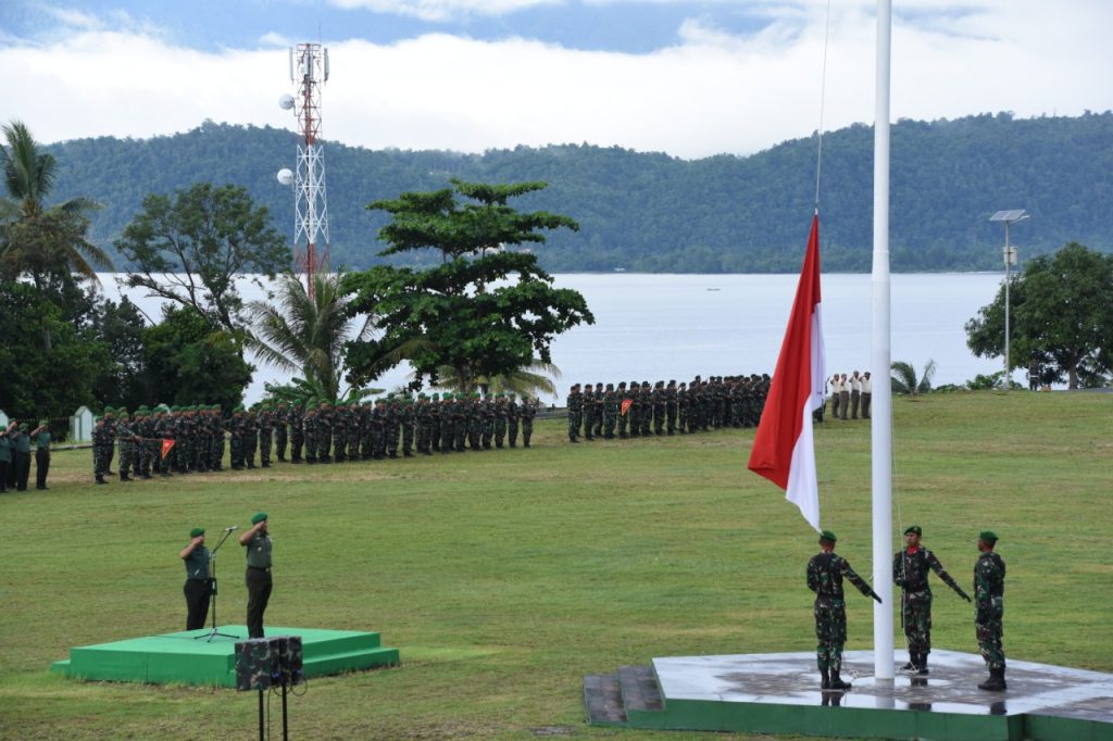 Manokwari – Kodam XVIII/Kasuri melaksanakan kegiatan rutin Upacara Bendera setiap hari Senin minggu pertama bulan Maret di lapangan upacara Makodam. Inspektur Upacara Kaajendam XVIII/Kasuari Kolonel Caj Kris Doni ,Komandan Upacara Mayor Czi Yohanis Tandi dan Perwira Upacara Kapten Czi Coko Santoso serta diikuti para Pamen, Pama, Bintara dan Tamtama serta PNS Makodam dan Balakdam XVIII/Kasuari ditambah Prajurit Kipan C dan Kipan D Yonif RK 762/VYS, Senin, (04/03/2019).