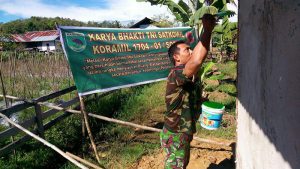 Danramil 1704-01/Sorong Timur, Mayor Inf H. Triyana, S.Pd.I, M.Pd.I, saat dikonfirmasi mengatakan, pembuatan jamban sehat yang diperuntukan bagi keluarga yang kurang beruntung merupakan Program Karya Bakti TNI Semester I TA. 2018 di wilayah Koramil 1704-01/Sorong Timur. “Ini merupakan bentuk kepedulian TNI guna meringankan beban hidup masyarakat sekaligus membantu meningkatkan derajat kesehatan masyarakat di wilayah Kodim 1704/Sorong,” terang Danramil.
