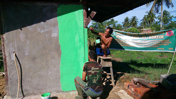 Anggota Koramil 1704-01/Sorong Timur melaksanakan kegiatan peningkatan kesehatan sanitasi serta kelayakan kesehatan, dengan membangun jamban di kelurahan Malasom. Dipimpin Serka Hadi beserta 3 orang anggota melaksanakan pengecetan dinding jambanisasi dan risplang agar terlihat rapi dan nyaman digunakan, dalam program Karya Bakti TNI di rumah warga.