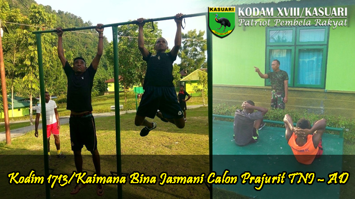 Kaimana – Menindaklanjuti perintah dari Komando atas kepada Aparat Komando kewilayahan tentang Perekrutan serta pembinaan Terhadap Calon Prajurit TNI – AD, maka Satuan Komando Kewilayahan khususnya Kodim 1713/Kaimana melaksanakan pembinaan kepada para Calon Prajurit TNI – AD, Jumat  (17/02/17).