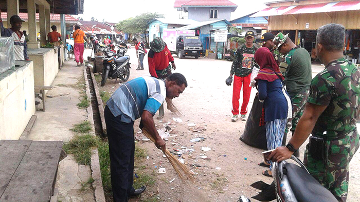 Kodim 1713/Kaimana & Komponen Masyarakat Bersihkan Pasar Menyambut HUT RI Ke 72
