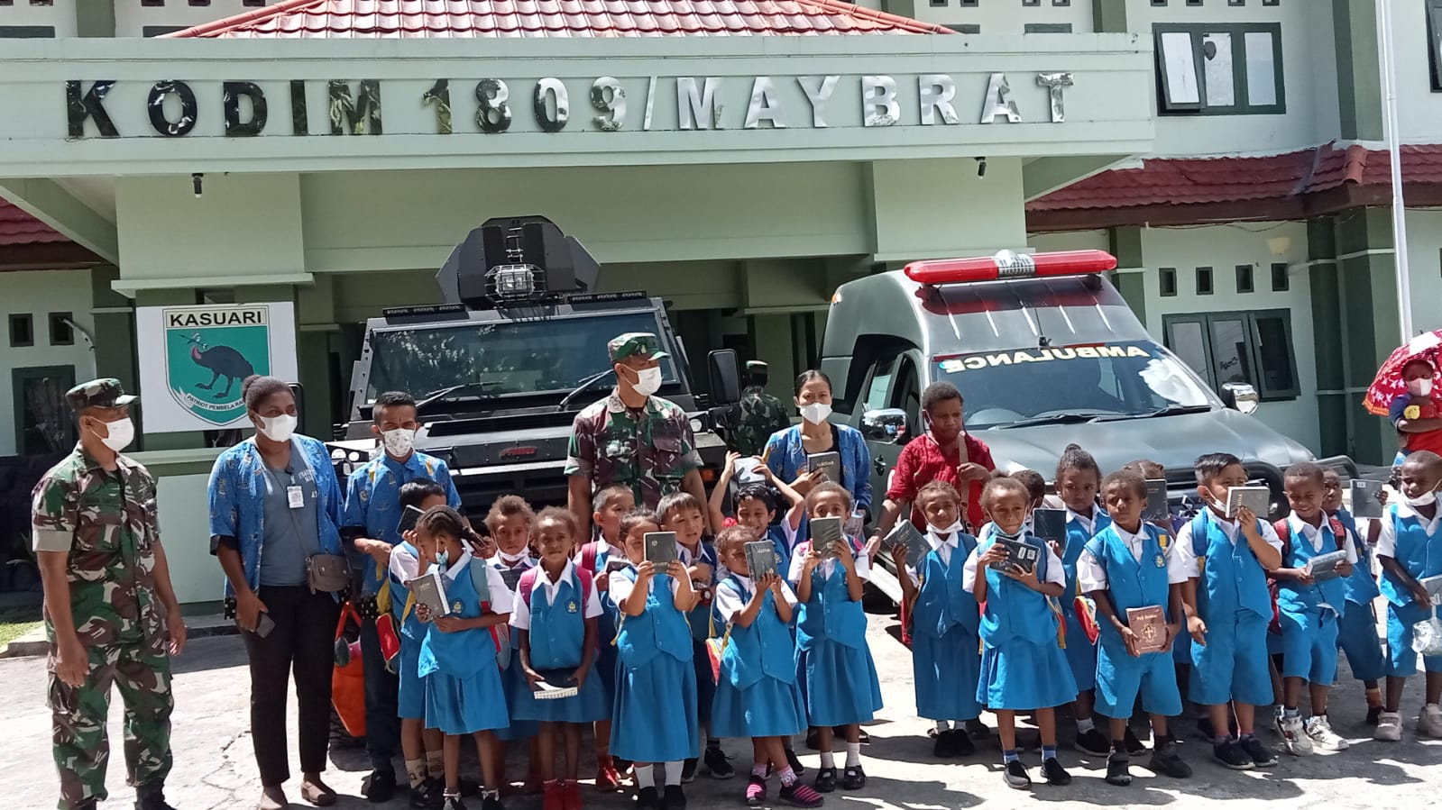 Di akhir acara Kodim 1809/Maybrat memberikan Al-Kitab untuk para anak-anak dan Guru PAUD TK Yarussalem dan melaksanakan foto Bersama.