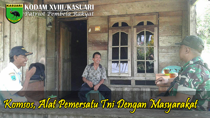 Sorong – Bintara Penghubung Distrik Malabotom Peltu Bambang Susalit melaksanakan Komsos dan tatap muka bersama kepala kampung Tanah Tinggi guna menjaga hubungan yang harmonis antara TNI dengan masyarakat setempat bertempat di Distrik Klamono Kabupaten Sorong, Senin (30/01/17).