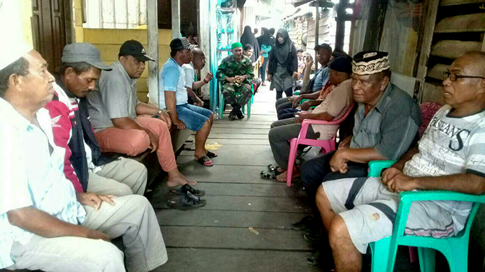 Sorong – Babinsa Koramil 1704-01/Sorong Timur Sertu Lazaku melaksanakan Komunikasi Sosial (Komsos) bersama Warga dan para Tokoh Agama di lingkungan RT/RW 002/005 Kelurahan Klaligi Distrik Sorong Kota Sorong, Kamis (08/02/18).