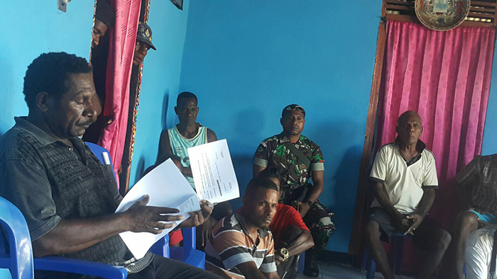 “Secara rutin kita mendatangi dan berkomunikasi dengan berbagai elemen masyarakat seperti tokoh agama, tokoh masyarakat, tokoh pemuda dan lainnya,” tutur Kopda Nikyan Bonay saat menjalankan tugas Binjaring dan Komsos dengan Tokoh Masyarakat Kampung Kokoroba.
