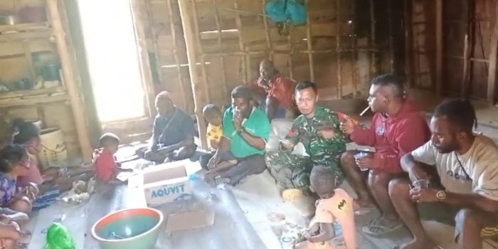 Suasana sangat bahagia dan canda tawa. Kehadiran Babinsa di pedalaman Papua sangat membantu kepada masyarakat khususnya di wilayah Kab. Pegaf, Papua Barat.