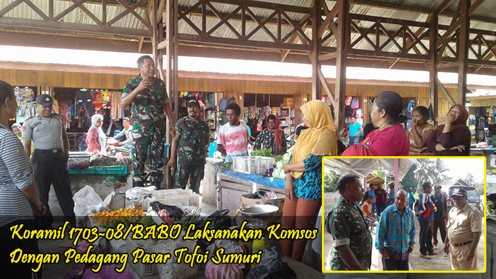 Pasar menjadi salah satu tujuan Koramil 1703-08/Babo dalam membina dan meningkatkan jalinan komunikasi dengan para pedagang di pasar, pasar merupakan salah satu tempat yang menjadi perhatian penting sebab pasar merupakan tempat keramaian yang mungkin akan lebih banyak berita yang dapat dijadikan bahan informasi, Koramil 1703-08/Babo selalu meningkatkan hubungan dengan para pedangan yang sudah bisa diandalakan diwilayah Pasar Tofoi Sumuri ini karena merupakan pusat segala informasi bisa didapatkan dari pasar.