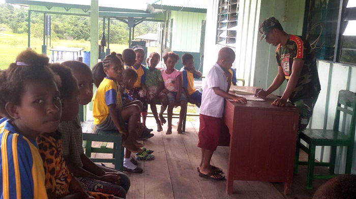 Manokwari – Demi mewujudkan cita-cita anak bangsa dan juga mempertahankan kedaulatan Bangsa, Danramil 1703-03/Merdey, Kapten Inf Asri Wuri Hendra Dewa dan Babinsa Koramil 1703-03/Merdey dan Kopda Lasno dengan gigihnya menyumbangkan tenaga dan fikiran untuk membantu mengajar membaca kepada anak-anak masyarakat Merdey di Makoramil 1703-03/Merdey Kab. Teluk Bintuni Prov. Papua Barat, Jumat (02/06/2017).