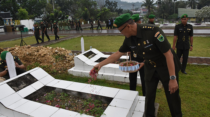 Manokwari – Dalam rangka memperingati Hari Ulang Tahun Keuangan Angkatan Darat (Keuangan TNI-AD) yang ke-73 Tahun, Keuangan Kodam XVIII/Kasuari menggelar Ziarah dan tabur bunga di Taman Makam Pahlawan Tikora yang diikuti seluruh Prajurit dan PNS kesehatan kodam, Senin (22/10/18).