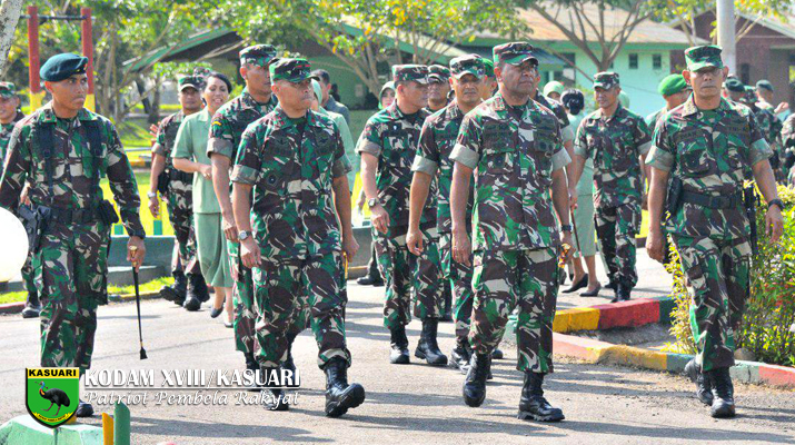 Sorong – Panglima Kodam (Pangdam) XVIII/Kasuari Mayjen TNI Joppye Onesimus Wayangkau, didampingi Komandan Korem 171/PVT, Brigjen TNI Ignatius Yogo Triono, serta para Kasi Korem 171/PVT, Komandan Satuan dan Ka Balak Aju jajaran Korem 171/PVT melaksanakan kegiatan kunjungan kerja bertempat di Mako Yonif RK 752/VYS Jl. Basuki Rahmat, KM 10.5 Kota Sorong, Kamis (13/04/17).
