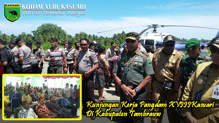 Kunjungan Pangdam XVIII/Kasuari Mayjen TNI Yoppye Onesimus Wayangkau beserta rombongan merupakan kunjungan kerja dalam rangka pengecekan kesiapan Pemilukada serentak tahun 2017 di wilayah Kabupaten Tambrauw, Pangdam XVIII/Kasuari Mayjen TNI Yoppye Onesimus Wayangkau beserta rombongan berangkat dari Bandara DEO Sorong menuju ke Kabupaten Tambrauw menggunakan Helikopter dalam melaksanakan pengecekan dan bertatap muka dengan Tokoh Masyarakat di Kabupaten Tambrauw.