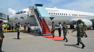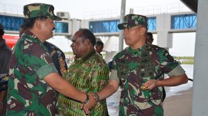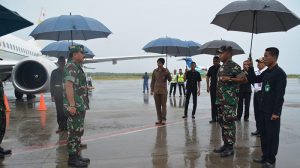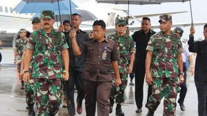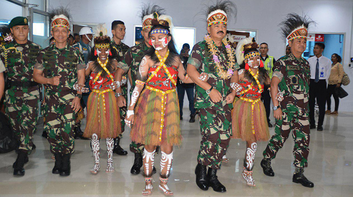 Sorong – Panglima TNI Marsekal TNI Hadi Tjahjanto,S.I.P, didamping oleh Kasad Jendral TNI Mulyono, Kasau Marsekal TNI Yuyu Sutisna,S.E, Wakasal Laksdya Achmad Taufiqoerrochman, beserta rombongan tiba di Bandara DEO Sorong, disambut oleh Pangdam XVIII/Kasuari Mayjen TNI Yoppye Onesimus Wayangkau, Danrem 171/PVT Brigjen TNI Ignatius Yogo Triyono, M.A, Danlantamal XIV/Sorong Brigjen TNI Amir Faisol, S.Sos, Kasrem 171/PVT Kolonel Inf Dian Sundiana,S.E,M.M, para Asisten Kodam XVIII/Kasuar, para Kabalak Kodam XVIII/Ksr, para Kasi Korem 171/PVT, para Dansat dan Kabalak Aju Jajaran Korem 171/PVT, Danyonmarhanlan XIV/Srg Mayor Marinir Moch. Chanan Asfihani, M.Tr Hanla, bertempat di Bandara DEO Sorong, Sorong-Papua Barat, Jumat (02/02/18).