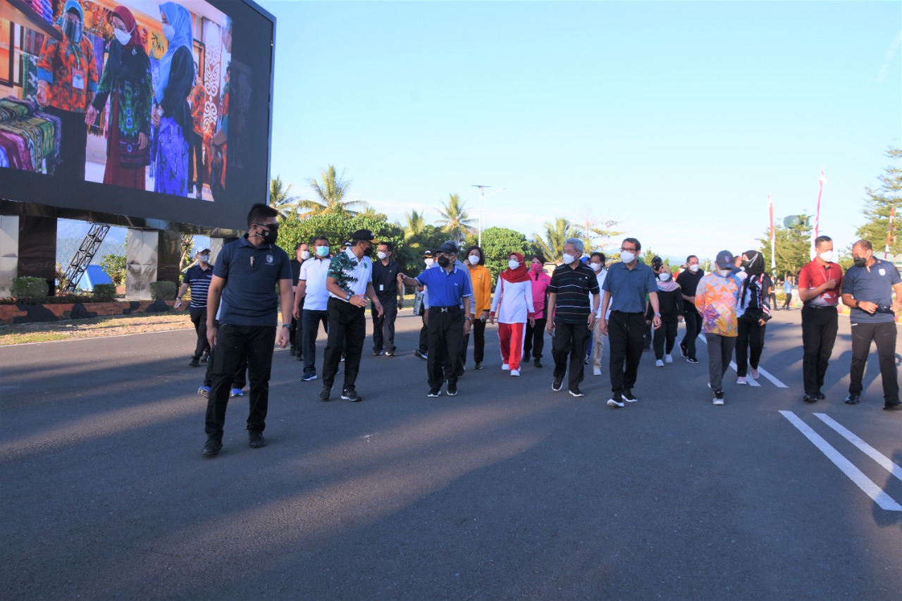 Kegiatan olah raga diawali dengan pemanasan dan dilanjutkan dengan jalan sehat bersama mengelilingi komplek Kodam XVIII/Kasuari.
