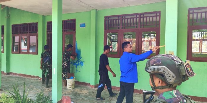 Sorsel – Satgas Pamtas RI-PNG Kewilayahan Papua Barat Daya Yonif 762/VYS Pos Johsiro dipimpin oleh Wadanpos Letda Inf Matheus Emmerich beserta 8 (Delapan) orang anggota melaksanakan kegiatan Bakti TNI yaitu Pengecatan Ruang Kelas SD Inpres 116 Johsiro di wilayah penugasan, bertempat Kampung Johsiro, Distrik Moswaren, Kabupaten Sorong Selatan. Selasa (13/08)