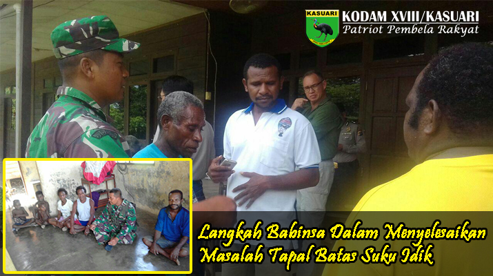 Sorong – Serda Fatkur Rohman Babinsa Koramil 1704-14/Beraur duduk bersama dengan tokoh masyarakat dalam menyelesaikan masalah tapal batas suku Idik di Kampung Gisim Darat, Distrik Klamono, Kabupaten Sorong, Papua Barat, Sabtu (04/03/17).