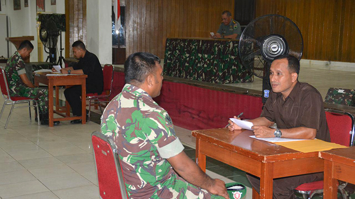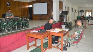 Sorong – Kasi Intel Korem 171/PVT Kolonel Inf Albert Panjaitan memimpin pelaksanaan Litpers kepada 136 anggota Denzipur 13/PPA yang mengikuti seleksi Satgas Kizi TNI Konga XX-P Monusco Ta. 2018, bertempat di Aula Praja Vira Tama Korem 171/PVT Jl. Pramuka No. 1 Kota Sorong-Papua Barat, Senin (16/07/2018).