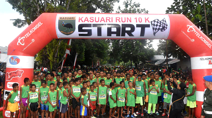 Lari kasuari 10K yang di hadiri pangdam XVIII/kasuari, Waka Podal Papua Barat, beserta para Muspida, Asisten Kasdam dan para Kabalak Kodam XVIII/Kasuari yang dimeriahkan oleh kalangan masyarakat dalam mengikuti lomba lari 10K.
