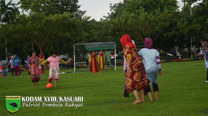Kegiatan sepak bola menggunakan daster yang dilaksanakan oleh ibu – ibu persit kartika chandra kirana cabang XXIX Yonif 752 ini merupakan salah satu dari rangkaian lomba – lomba yang diadakan dalam rangka menyambut HUT Persti ke-71 Tahun 2017.