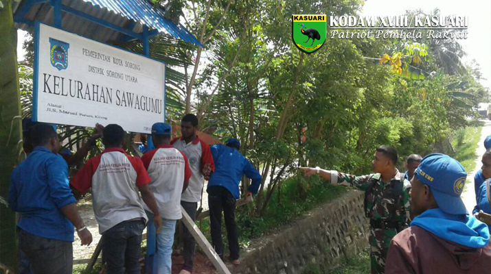 Sorong – Babinsa Sawagumu Koramil 1704-01/Sorong Timur melaksanakan kegiatan komunikasi sosial bersama mahasiswa yang lagi Kuliah Kerja Nyata bertempat di kelurahan Sawagumu Distrik Sorong Utara Kota Sorong, Kamis (04/05/17).
