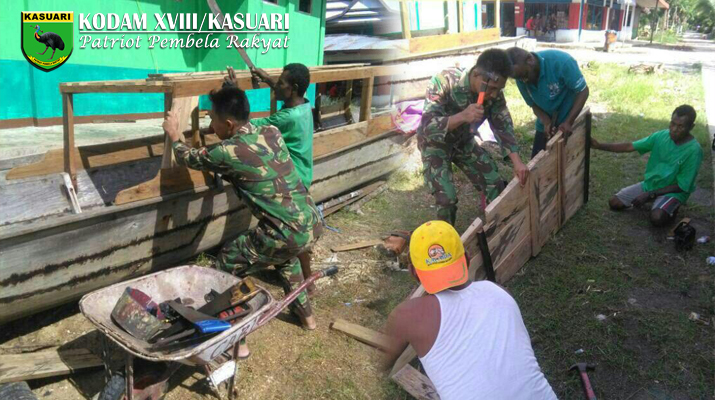 Babinsa Kampung Manoket Kopda Rohiman mengatakan diwilayah binaannya mayoritas adalah nelayan. Perahu milik Jhon yang tidak layak digunakan/sudah termakan oleh usia, Babinsa berinisiatif untuk merenovasi menjadi baru sehingga Bapak 2 (Dua) Orang anak ini bisa menggunakan perahu untuk memenuhi nafkah bagi keluarganya.